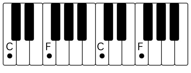 Beginne mit C und spiele die weißen Tasten bis zum nächsten C. Du wirst sehen, dass du diesem Muster automatisch folgst.